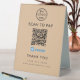 Boost your business's contactless payment options with this professional Venmo QR code scan to pay logo table tent sign. Sleek and stylish, this sign is perfect for displaying at your checkout counter, restaurant table, or anywhere customers can easily scan and pay. Customise the design with your business logo and personalise it with a message.