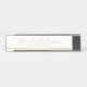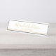 Professional White and Gold Desk Nameplate featuring name in gold modern script font style and profession in gold modern sans serif font style, with bottom gold border, on white background.