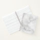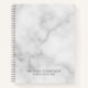 Professional notebook features custom name and text in grey classic serif font style on white marble background.