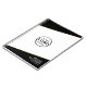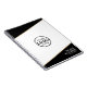 This sleek notebook features bold black angled accents at the top and bottom, separated from the white background by a clean gold line for a sharp, modern touch. Your company logo sits prominently in the center of the front cover, while customizable lines of text along the bottom can include your name and title, business name and tagline, or any details you choose. Perfect for meetings, note-taking, or corporate use, this notebook keeps things polished and professional with fully editable text and layout.
