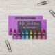 Faux glitter sparkles behind an array of colourful crayons laid out in a rainbow pattern. Easily update the name, job title, and contact info on front and back. Chalkboard script and fonts are used to mimic a teacher's classroom. Available in many other sparkly colours. Great for substitute teachers, preschool teachers, professors, childcare workers, day care centres, and after school care centres.
