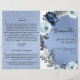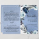 Elegante programa de quinceañera con hermoso arreglo floral en acuearela en varios tonos de azúl y detalles en imitación de aluminio azul. Uso de elegante caligrafía moderna. Nuestro texto es solo un ejemplo, ya que puedes agregar cualquier información o mensaje que prefieras. Puedes hacer ajustes de tamaño de texto, colour y estilo seleccionando "seguir personalizando". NOTA: Este programa es enviado plano y REQUIERE QUE LO DOBLE MANUALMENTE en casa. Se recomienda el tipo de papel seleccionado por diseñador. Invitación que coordina disponible. Este mismo programa esta disponible también en Inglés. Parte de nuestra colección "Elegant Blue Watercolor Floral Quinceañera", con variedad de productos para coordinar disponibles.