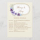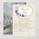 Guide your guests through your special day with this exquisite wedding program. This double-sided card features a soft cream background framed in crisp white with elegant gold borders. A lush floral arrangement in shades of lilac, violet, and light blue adorns the design, creating a sophisticated look for garden or outdoor weddings. Perfect for displaying your order of service, bridal party, and a thank you message in elegant golden typography.