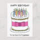 A giant cartoon birthday cake covered in lit , pastel coloured candles, set against a crisp white background. The words 'Happy Birthday to my favourite Programmer' accompany the image.