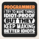 Funny Programmer Sayings "Programmer I Try To Make Things Idiot Proof But They Keep Making Better Idiots". Grab this Funny Programmer design as a funny gifts for an awesome mum, dad or friend.