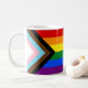 The Progress Pride Flag has five additional arrow-shaped lines. It includes black and brown stripes to represent marginalized LGBTQ+ communities of color, along with the colors pink, light blue and white, which are used on the Transgender Pride Flag.