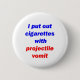 "I put out cigarettes with projectile vomit" Humourous anti-smoking design that will really get a smokers attention! Makes a great gift for anyone who get sick from the smell of cigarette smoke.