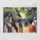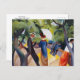 A postcard with the painting, Promenade (1913), by August Macke (1887-1914). A German Expressionist painter, influenced by Cubism. Depicting an expressive scene of men and women formally dressed in a city park.