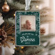 Celebrate his first Christmas as a grandmother with this sweet photo ornament featuring a baby photo framed by falling white snowflakes on a forest green background. "Promoted to Glamma" appears beneath in white rustic lettering, along with the year.
