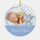 Cute promoted to Nonna & Nonno boys Photo Christmas Ornament featuring an adorable blue elephant set on a blue & white polka dot background, Just add YOUR PHOTO! A Wonder Christmas gift sure to be treasured for many years to come.