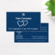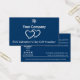 The Modern Promotional Blue Valentine's Day Gift Voucher Card is part of the Blue Business Card Designs & Marketing Items collection. This landscape card features white text on a blue background with two hearts. The company logo and name are top centre aligned, with the "$XX Valentine's Day Gift Voucher" text at the bottom.