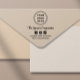 Modern promotional stamp for your business or organisation featuring your logo, your company name in a bold stylish script and your facebook, instagram and tiktok social media handle for customers and clients to connect with you online.