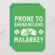 Prone to Shenanigans and Malarkey St Patrick's Day Invitation