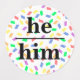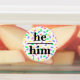 Fun pastel confetti sprinkles with various pronouns can show support and allyship in a group setting. Each set is pre-filled with he/him, she/her, and they/them for a variety, or customise the pronouns if you like.