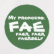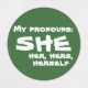 Let people know that the right pronouns to use for you. Get a set of different pronouns to use on different days, or as an option to offer guests during events.