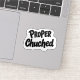 Show off your British pride with this Proper Chuffed sticker. Featuring the popular UK slang for being extremely pleased, this funny quote decal is perfect for your laptop, water bottle, or journal. Made from high-quality waterproof vinyl, this aesthetic sticker is durable and easy to apply. Whether you're a fan of British culture or just feeling proud of an achievement, this unique typography sticker makes a brilliant small gift for friends or a fun addition to your travel accessories.