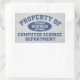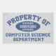 Property Of Computer Science Department - blue collegiate style lettering with binary code Xs.