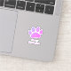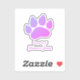 Two lines of customisable text highlight this purple gradient paw print decal sticker.