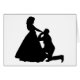 BLACK SILHOUETTE OF A MAN ON ONE KNEE, PROPOSING TO THE LOVE OF HIS LIFE