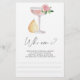 Watercolor elegant rose flower with glass of champagne, pear. "Petals & Prosecco". Matching items available.