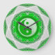 Gorgeous bright green and silver colours with peacock detailed lace and satin effect. This beautiful custom printed wall clock with subliminal message of balance, Yin Yang symbol in centre - fully customizable space for you to personalize with text, if you desire.
