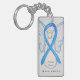 Awareness ribbon angel keychain features the art of a light blue awareness angel painting. The art side notes "Prostate Cancer Awareness" and the reverse side states "I Hope & Support Awareness for a Prostate Cancer Cure!" Add your own custom words for personalised angel art cause awareness custom charm key chains! You can also remove the text for an art only angel pendant key chain. The light blue awareness angel ribbon painting art keychains can be customised with personalised messages to make great awareness cause art key chains for fundraisers, awareness gifts, or other special events. Give this angel art keychain charm as an awareness ribbon gift for any occasion.