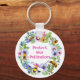 A floral wreath, featuring watercolor flowers, leaves and berries, and a variety of pollinators, including bees