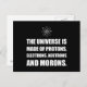 Smart scientists, chemistry nerds and geeks joke the universe is made of protons, electrons, neutrons & morons. Check out this funny custom design on tees, shirts, mugs, cases, gifts and apparel.
