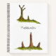 A notebook with Prototaxites sketches on the front and back. Prototaxites is a prehistoric fungus / lichen that grew to eight metres tall. Change the text to your name, so no one will try to steal your giant extinct mushrooms.