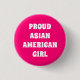 Proud Asian American Girl hot pink and white modern typography cute pin button.
