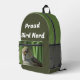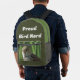 This backpack features a photo of a small sparrow looking at the world. The main body of this backpack displays a green colour that can easily be customised. "Bird Nerd" can also be personalised if you desire.