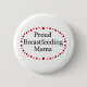 This button features black text reading Proud Breastfeeding Mama encircled with red roses.