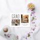 This modern, elegant graduation announcement is for high school or college grads that like a minimalist look. It features two photos, and the word "grad" in a large modern font printed in real gold foil. Alternatively, you can select rose gold or silver for the foil printing. The back of this card features a large photo next to your party details.