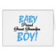 Proud Great Grandpa of a Baby Boy T-shirts, mugs, cards, stickers, tote bags, hoodies, and other great grandpa apparel and gifts wtih blue and black text.