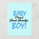 Proud Great Grandpa of a Baby Boy T-shirts, mugs, cards, stickers, tote bags, hoodies, and other great grandpa apparel and gifts wtih blue and black text.