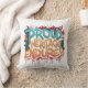 A vibrant and eye-catching pillows with the phrase "Proud Heritage Endures" in multi-coloured block letters, arranged in a circular pattern, creating a visually striking and memorable design.