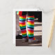 Legs clad in rainbow legwarmers in celebration of a LGBTQ pride event. This postcard is fully customisable.