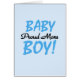 The proud new mum of a baby boy who wants to announce it to the world will love these blue and black text design Proud Mum T-shirts, buttons, mugs, bags, stickers, cards, and more!