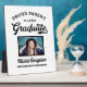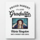 Stylish white "Proud Parent of a 2025 Graduate" graduation plaque sign display features a photo of the grad framed in black with simple and classic name, class year, and school name wording that can be personalised. Plaque colours and style can be modified to coordinate with school or photo colours. Makes a great keepsake gift for mum and dad!