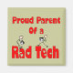 Radiology technician gifts "Proud parent of a rad tech", t-shirts, mugs, hats, tote bags, cards, keychains and buttons.