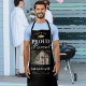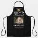 Elegant graduation celebration BBQ apron featuring a faux gold mortarboard, a photo of the grad, the saying "proud parent of the graduate", their name, place of study, and class year.