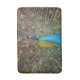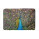 Original artwork of a peacock with his plumage on display. The iridescent tail feathers glow in shades of blue, teal, green, and purple giving this proud bird the appearance of royalty. The vibrant colours of this majestic pea fowl shine in this lifelike art that fills the entire design area.