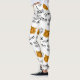 Drawing of a tiger face of black and orange colours. Some scars and tiger footsteps. Text Proud tiger tamer. One of a kind funny woman's, female leggings for fun and good mood.