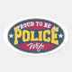 Show the world you're proud of your husbands law enforcement service with this Proud to be a Police Wife gift! Oval police gift design in yellow, blue and red colours with stars! The perfect gift for Police Wives!