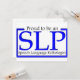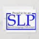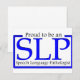 "Proud to be an SLP, Speech Language Pathologist". This design can be found on t-shirts, hats, mugs, magnets and much more!