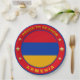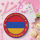 The national flag of Armenia is infused into a circle shape, which in turn, is decorated in the national flag colours. The added text is a show of pride and patriotism to be a person from Armenia.