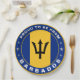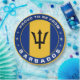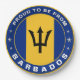 The national flag of Barbados is infused into a circle shape which itself, is coloured in the flag colours. Along with decorative stars, there is the proud, patriotic text.