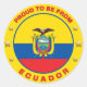 The national flag of Ecuador is infused into a circle designed in the flag colours. Aside from the patriotic text, their are decorative stars which separate the text on the upper and lower parts of the circle.