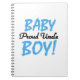 Proud Uncle Baby Boy keepsake boxes, tiles, ornaments, notebooks, hoodies, mugs, cards, stickers, tote bags, magnets, and other proud uncle apparel and gifts with blue and black text.