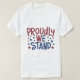 Distressed and Vintage: The text "Proudly We Stand" is written in a distressed, vintage style with each letter in a different pastel colour. The overall feel is vintage-inspired.